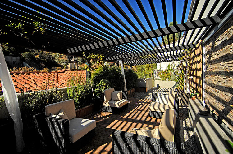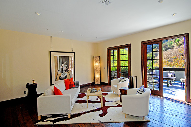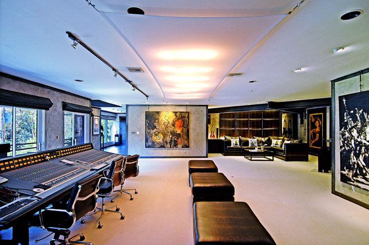Totally private, gated celebrity compound located in prime Hollywood Hills with dramatic private drive leading to a grand entry. Expansive spaces, grand scale rooms throughout open to loggia's, providing a floor plan functional for a large family or the ultimate entertainer's lifestyle. Recording studio, gym, screening room, stunning master with lofty spa bath overflowing vessel tub, plus three additionally spacious bedroom suites, with large walk-ins. |