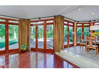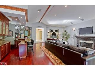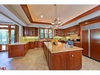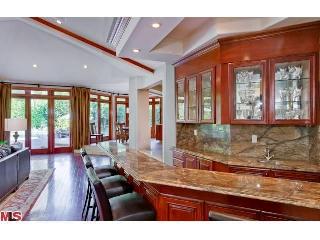 Stunning newer one story 5 bedroom, 6 bath walled and gated Contemporary Mediterranean located in upper Bel Air. This light and bright private secluded home has impressive iron front doors, a dramatic marble entryway, high ceilings, custom French doors, crown moldings, hardwood floors and a spacious open floor plan that make it perfect for entertaining. Generous gourmet kitchen with center island, granite counters and top of the line appliances that all lead to the step down family room with fireplace and full bar. The dining area looks out to the park-like grassy yard highlighted by the meticulous grounds, mature trees, salt water pool, spa and remote controlled waterfall. The large master suite has its own patio and a romantic bathroom with separate tub and shower. Home also features a professional recording studio with live room, two control rooms and a vocal booth. |