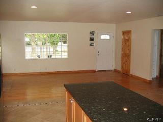 Live and work at home. Main house remodeled with elegance and quality workmanship throughout and features 3 bedrooms, 2 baths, gourmet kitchen with high-end appliances and granite counter tops. Spacious living room with fireplace, formal dining room and laundry room. Rich hardwood flooring and beautiful tile throughout. Newer plumbing, central air and more. Separate guest quarters (or office) with bathroom. Plus a fully sound insulated two-room recording studio (equipment not included) with central AC/heat and upgraded electrical. Manicured backyard has large covered patio. |