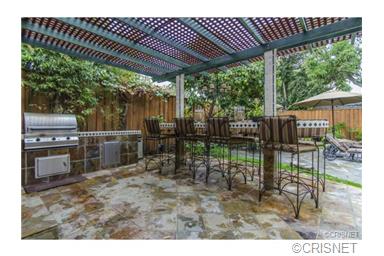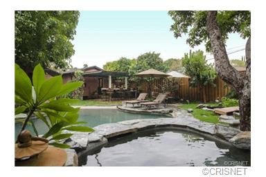 Private and gated traditional, south of the boulevard in prime Sherman Oaks. Entertainer’s dream backyard with a resort-like feel featuring a lagoon-style pebble-tec pool and spa, stone waterfall, koi pond with bridge, mature fruit trees and a patio area with a built-in BBQ center and tiled dining table. Large detached recording studio/garage with a ½ bath perfect for working from home. Updated with exquisite attention to detail featuring built-in cabinetry, custom tiling, wood flooring, crown molding, surround sound, newer windows and custom wall coverings. |