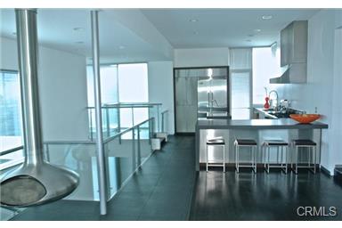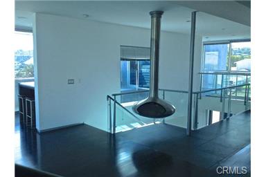 sweeping views. Suspended steel fire “orb” in the living space
