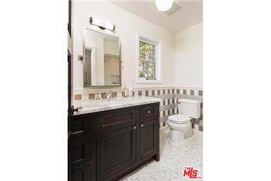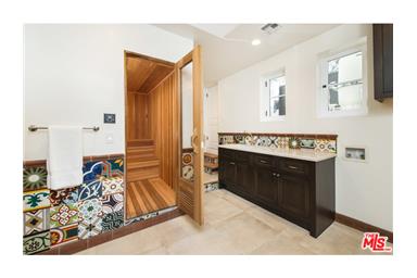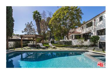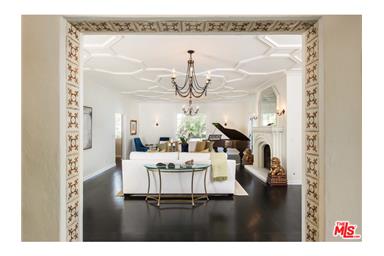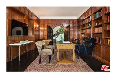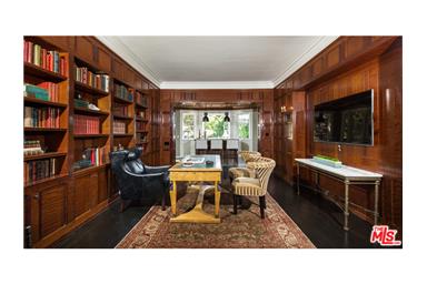 Grand corner lot estate located on a beautiful tree-lined street in Loz Feliz. This Old Hollywood 5 bedroom, 6.5 bath Mediterranean has been extensively remodeled. The property's completely gated grounds feature a 3-car garage, additional parking for 9 cars, sparkling pool/spa and outdoor patio surrounded by lush and mature landscaping. Foyer with wrought iron entry doors and impressive winding staircase. Arched entry leads into wood paneled executive office. Coffered ceilings and massive fireplace grace the formal living room. Expansive windows in the formal dining room offer an impressive view of the garden. Completely renovated Chef's kitchen features subzero fridge/freezer, Walker Zanger marble island/breakfast bar, La CornueFe oven/range and Apavisa designer tile. Master retreat with French doors leading out to private balcony. 3 bedrooms with en-suite bathrooms. Spacious basement features theater, sound studio designed by DJ Skee with Swedish acoustic tile. Original sconces and York safe. |