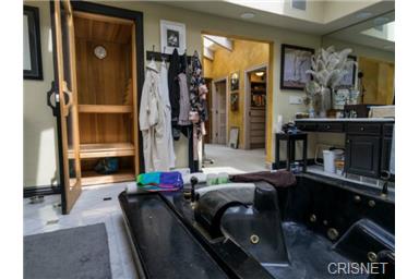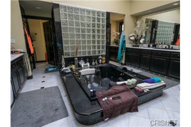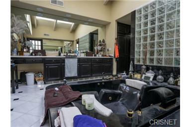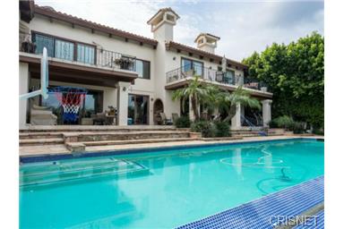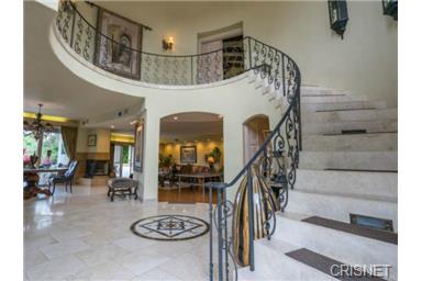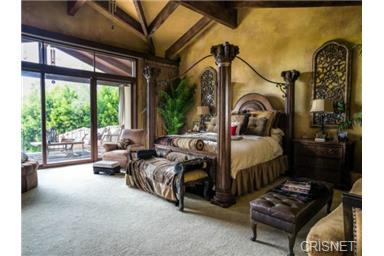 Private Mediterranean Villa in a prime location south of the Blvd. Sensational views overlooking sweeping landscapes, & mountains throughout the home. Entrance hall has 30 ft ceilings with a spiral staircase and travertine floors throughout most of the main floor. Grand living room with wood floors, fireplace, bar, dining room and courtyard. Magnificent master bedroom with fireplace, sitting area, wet bar and fridge. Master bath with two walk-in closets, dual sinks and sauna. All bedrooms with full baths and 4 with walk-in closets. 25 ft vaulted ceilings in the upstairs bedrooms. Two kitchens. High tech home with computer controlled LED lighting, alarm, office for 2 and a pro recording studio. Saltwater pool, spa, outdoor bar, BBQ and a fabulous indoor/outdoor flow overlooking sweeping vista's. Large 3 car garage plus enough parking for over 14 cars. Short Sale - Subject to Lender Approval. |