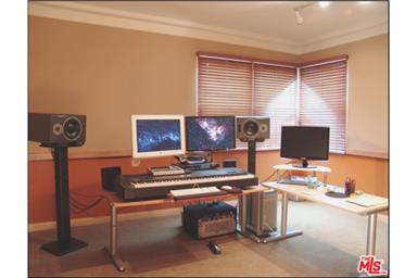 Updated remodeled house with an updated sensational recording studio (named as one of the Hottest New Studios of 2011). Full frequency studio, designed and built by the esteemed Steven Klein of Sound Control Room, with a huge control room and a very spacious live room. Exquisite lighting with plenty of natural light. This truly is a Masterpiece of a Studio that encourages all the inspiration that you will need. The updated house has four bedrooms and three bathrooms and one bathroom in the studio. Separate entrances plus a large private courtyard style backyard. Inconspicuous from the street, you would never dream that behind the gates there is this World Class Studio. The Studio is adorned with custom built doors and windows, maple and walnut hardwood on the floors and walls, plus accent and cove lighting. Private parking behind the solid gates for exceptional privacy and security. Sale excludes all equipment and furniture, but can be negotiated separately. |
