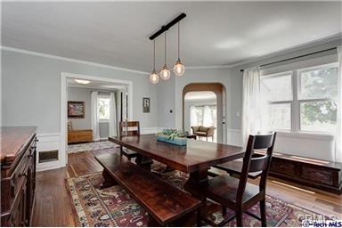Tastefully appointed Rossmoyne neighborhood home complete with separate music studio, you can enjoy the mountain and cityscape views from the living room, dining room, and kitchen. Front patio with handmade old world cement tile, beautiful entry with new walnut plank hardwood floors, living room has large beautiful Marvin windows and ornate fireplace. Dining room flows into the kitchen with farmhouse sink, handmade tile backsplash, Carrera marble countertops and new stainless appliances. Downstairs family room with surround sound and possible guest quarters. Separate sound proof music studio with double walls and double windows. Backyard with Ipe wood deck and outdoor Green Egg BBQ kitchen. Whole house water filtration system and a central vacuum system! The fridge and stove are negotiable. |