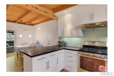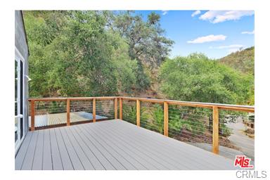 Quiet, private and tucked away in the hills of Old Topanga is this 4 bedroom 2.75 bath home on 1.25 acres. Great open floor plan, newly refinished oak hardwood floors, French windows and doors. New remodeled kitchen with new cabinets, glass tile back splash, granite counters, stainless hardware and appliances plus a farmhouse sink. Wood burning stove, dual zoned central heating and 1 zone air, new carpet. Brand new master suite with Carrara marble, separate shower and tub. New composite decking off the master. Outdoor living room patio. The converted garage with a 3/4 bath is currently being used as a music studio. Washer/dryer included. Plenty of parking, close to trails. Lots of garden and great outdoor living space, even room for a horse corral. |
