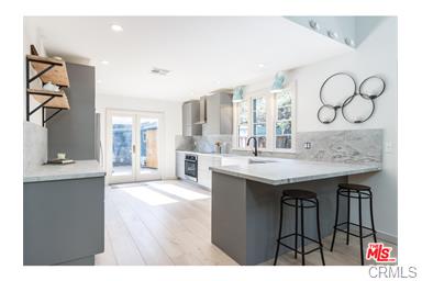 Impeccably redone home with updated style while maintaining the best of its original Craftsman charm. Open floor plan ties the living room, dining room and kitchen together for the perfect entertaining space. A generous eat-in kitchen boasting professional appliances, Italian Quartzite countertops and gorgeous farm house sink. 9" wide plank French oak flooring and new designer light fixtures. 3 spacious bedrooms with custom cabinets, recessed lighting and 2 beautiful bathrooms. Professional recording studio/guesthouse. New plumbing, HVAC, electrical and roof. Tankless water heater, Xeriscape landscaping. Located in the heart of Larchmont, near all trendy restaurant and hot spots. This home is truly one of a kind and must be seen. |