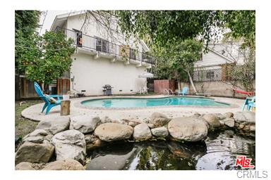 Gated 2-story Hollywood home with pro recording studio and pool. Perfect live/work environment for Musicians/Producers Lower level has living room with wood laminate floors and recessed lights. Two bedrooms downstairs each with separate entrance and Jack & Jill full bathroom between. Upper level open loft-style feel with high vaulted wood ceiling with beams and wood laminate floors. Kitchen with newer counters, cabinets, stove and dishwasher. Large living area with sliding glass doors and house-top views. Two bedrooms upstairs with Berber-style carpet. Large bathroom with tile floors. Balcony with stairs down to backyard with pool/waterfall. Upper and lower levels have separate AC units. Recording Studio has separate entrance, large Control Room/office, Live Room, mic/cable closet and a bathroom. Professionally designed by Steve “Coco” Brandon with 18” walls, upgraded clean power and hardwood floors. The control room (27’x 21’) was acoustically designed and tuned for mixing (flatter response) with built-in mains (speaker soffits, no speakers included). Counter-top style rack cabinet with wiring troughs to desk/console area, tracking room and upper-level bathroom (extra iso). The lounge/office area of the control room is carpeted. The tracking room is 15’x 10’. The mix and tracking room each have a Samsung ductless Quite AC. Gated parking for 6+ cars. No equipment included. This is a Short Sale - Subject to Lender's Approval. |
