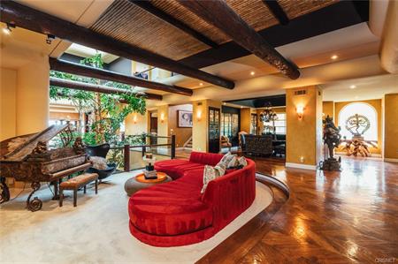 Set atop a spectacular hillside against the extended city light views lies this architectural compound. A lush central atrium opens to the sky with a retractable roof. A spacious chefs kitchen with center island, stainless steel appliances and granite counters. Entertainers living and dining room, a spacious office/library with a private terrace. A main level Master Suite with large scale glass doors that slide open to the beautiful outdoor space with a private pool and spa overlooking the city views. A large walk-in closet generously scaled for ample space is adjacent to a beautifully appointed master bath/spa. The lower level offers a true compound made for creativity and inspiration: A professional recording studio skillfully engineered with isolation booths and a control room. Adjacent is a home screening room and personal concession bar as well as lower level dining and wine tasting quarters. Lower level garage parking and ample storage. This magnificent compound is truly a unique offering for the creative lifestyle it demands. |