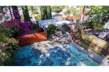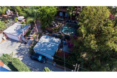 Silver Lake has a new zip code: 90042. Come tour this 2 bedroom - 2 bathroom tri-level Spanish styled home located on a quiet, secluded, tree-lined cul-de-sac street 2 blocks away from Los Angeles renowned York Blvd. It has an open floor plan that boasts a formal living room and open dining space that leads directly to an outside deck taking full advantage of the house top & hillside views of Highland Park and Eagle Rock. Downstairs a bedroom and den/office workspace that leads you to an additional terraced recreation area and detached garage that has been finished with sound proofing and used as a music studio/jam room! Don't underestimate this hidden gem from the outside. |