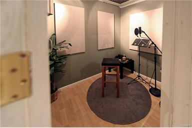 Charming Reseda ranch style home features a professionally treated sound studio with iso booth. The 3 bedroom, 2 bath main house has a cozy living room with hardwood floors, fireplace and dining area. Large kitchen has a breakfast nook and includes refrigerator, stove and microwave. Laundry closet includes stackable washer and dryer. All bedrooms have hardwood floors and ceiling fans. Detached garage has been converted to a music studio with central AC, completely sound proofed with double doors, triple wall construction and raised floor. Vaulted ceiling and sound treatment by Steven Klein. Includes a ½ bath and closet as well as an isolation booth - great for vocals, guitar amps, and even small drum sets. Many hit gold and platinum records recorded here, with artists including Shakira, Demi Lovato, and Goo Goo Dolls. Also includes 10 foot movie screen and HD projector. Long driveway with gate can accommodate 3 cars or RV. Huge yard features grassy lawn, mature tree, stone patio and separate shed. Newer central air/heat and sewer line. Copper plumbing. |