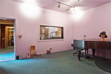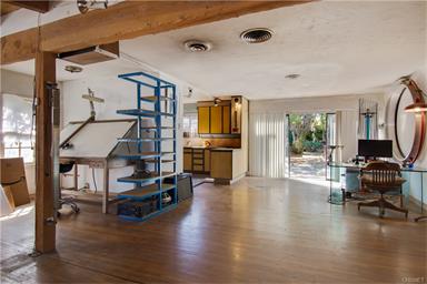 Artist's retreat in highly desirable area of Encino. Originally a 3 bedroom home now a 2 bedroom home convenient for an art studio or office. Owner had plans to extend the home and has the pad ready and plans available. Separate professional sound/recording studio building with a control room and stage which is 700 sq.ft., 35' x 20', floating floor. Stage is 17' x 15' with 2 diffusers. Control room is 14 1/2' x 12 1/2' and there is treatment on all the walls including reflection phase gratings on the back wall. Award winning sound effects for feature films recorded here. There is also a separate detached 2 car garage currently set up for wood or metal fabrication. Ideal situation for any musician, artist, or carpenter! |