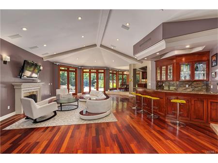 Amazing contemporary Mediterranean in upper Bel Air with 5 bedrooms, 7 bathrooms, and one of the best professional home recording studios in LA; having two control rooms, live room, vocal booth and amp room. Grand iron doors, impressive marble foyer that leads to an extensive open floor plan with African mahogany floors. A wall of custom French doors opens to the magnificent backyard with pool, spa, large grassy area and mature trees. The spacious kitchen with oversized center island overlooks the dining area and the living space with fireplace and bar. The master suite is the perfect getaway with high ceilings, well appointed bath, large walk-in closet and fireplace. A spectacular home in a great location, close to all. |