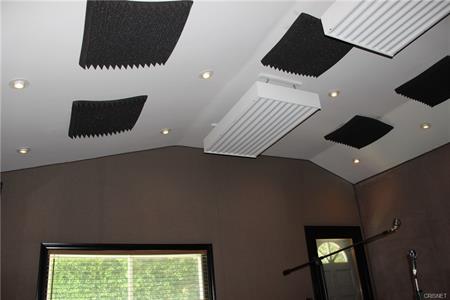 Own your own recording studio and have a home to live in too. Both studio and house are vacant and ready to move in! Per owner, state of the art professional recording studio used by many Grammy winning and nominated recording artists as well as Academy Award winning artists and composers. Studio includes a ¾ bath, 4 full time iso rooms with floating floors and walls. The big iso room can hold 12 string players and a conductor. There is another iso room that will fit an 8 ft. grand piano. The studio has a faux sofit with room for 15” main studio monitors. Truly one of the best and versatile home recording studios in Los Angeles. Not many home studios can track a 5-piece band with drums live! The home offers 2 bedrooms, living room with fireplace and lots of natural light, family room with fireplace and 12 ft., three panel sliding glass door for complete view of yard. One and a half bathrooms, hardwood and tile flooring, stainless steel appliances in kitchen, service porch with washer & dryer, central air/heat, security system private back yard with pool & spa, covered patio and BBQ. |