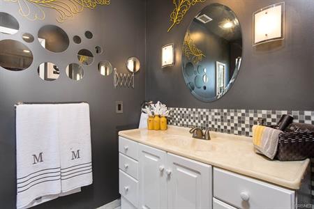 Stunning home, great decor and upgrades with a sound studio in the gorgeous backyard. This beauty has central air and heat, copper plumber, upgraded double paned windows, recessed lighting and hardwood floors. Bright-open living room, custom kitchen has separate breakfast area with huge garden window. The huge master suite has 3 closets and an upgraded bathroom. Large family room (or 3rd bedroom). The backyard is heaven, with a large grassy area, covered patio cover and an outdoor spa. Plus 400 sq ft guest unit built as a sound studio. So much to offer and so many features. This is the home you have been waiting for!!! |