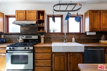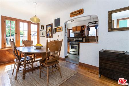 Delightful English Tudor with a decidedly bohemian vibe, this charming home is located on a tree-lined street in the best pocket of Atwater Village. Set up from the street under the canopy of a mature Sycamore tree, barrel-vaulted living room with hardwood floors, original wood casement windows and focal fireplace, formal dining room, which has been opened to the kitchen with butcher-block countertops, farmhouse sink and large pantry. Two bedrooms and an updated bath are accessed off a central hallway with coat and linen closets. The back garden with multiple gathering spaces nestled under mature citrus trees. A brick patio leads to a large music recording studio with a separate control room. Ideally located between Los Feliz and Glendale Blvds and close to all of the best boutiques and eateries Atwater Village has to offer! |