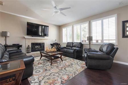Beautiful 2-story home at the top of the Hillcrest area of Castaic! Gated entry! Downstairs: open living room, dining area, game room/office. Huge kitchen with lots of counters and storage space; Wolf 5 burner gas stove, newer dishwasher, center island; eat-in kitchen, desk and pantry which open to the large family room with fireplace. The 3rd car garage option is a finished sound proof room, currently used as a gym. Downstairs bathroom has wainscoting, pedestal sink, tub/shower combo. Upstairs: Master suite with beautiful wood floors, plantation shutters, 2 walk-in closets, huge master bathroom with dual sinks, vanity, soaking tub and separate shower. 3 additional bedrooms with wood floors, high ceilings. Large open loft. Spacious secondary bath with separate tub/shower and dual sinks. Large laundry room, walk-in linen storage closet. The 2 car garage is completely drywalled & has storage space. The easy care backyard has concrete patio with overhead, and room for grass or garden; raised planter beds. The side yards are gated at both ends - great for dogs. Wonderful and impressive home! |