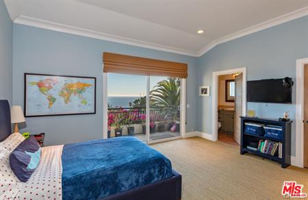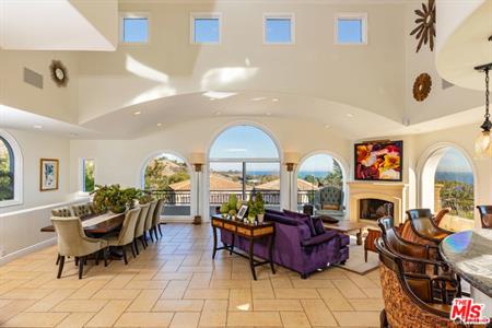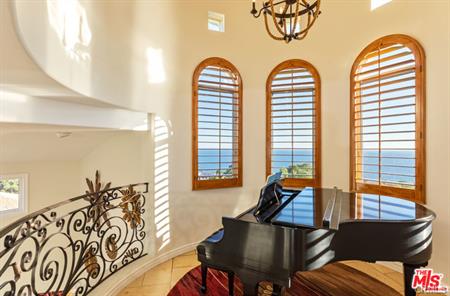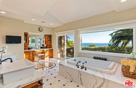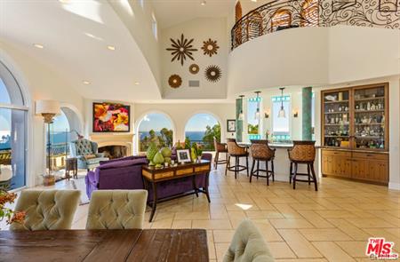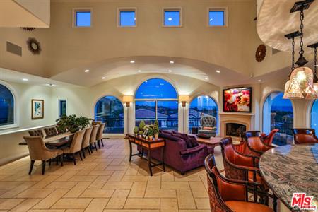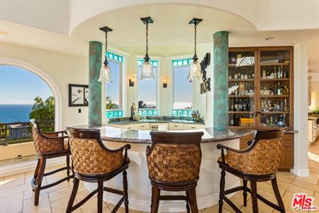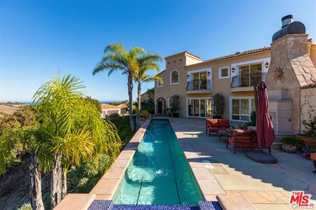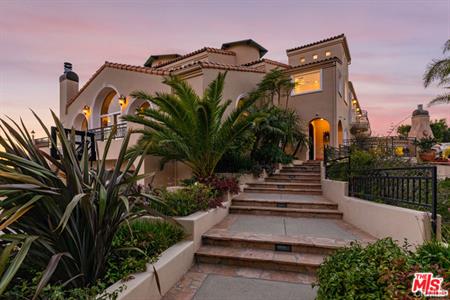 Panoramic ocean and mountain views - Castillo Del Mar, all redone in 2011. Contemporary villa with five bedrooms plus a detached ocean view recording studio and screening room. This beautiful villa offers a great room with limestone floors, full bar, gourmet island kitchen. First floor oversized master suite with fireplace and huge walk-in closets. Ocean view master bathroom with marble counters and floors, spa tub and steam shower. Adjacent is an ocean view bedroom with bath. Walnut floor staircase leading to the upper level theater and music room with state-of-the-art sound systems. Two additional bedrooms and bathrooms with ocean and mountain views, office with wet bar. Elevator, lap pool with jacuzzi/waterfall. Outside entertainment areas with fireplace, kitchen with BBQ and 4 car garage with large motor court and lush landscaping on over 1.5 acres. Smart house, gated and private. |
