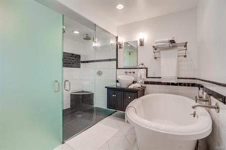 North Kentwood beauty has 4 bedrooms and 3 bathrooms with a nice-sized recording studio. Impeccable home with formal entry, bright and airy kitchen with granite counters, lots of cabinets and water filter, newly painted dining room and a large family room with wood flooring and wet bar. Newly painted master bedroom with double glass doors to access the outside, heated flooring, large shower, free standing hot air tub and walk-in-closet. Exercise room with fully mirrored wall and rubber floor. Wide baseboards, crown molding, laundry room with utility basin and cabinets. Dual pane windows, wood floors, tank-less water system and security system with 8 cameras. Water saving turf lawn and pavers in front and back and a heated spa with stereo system. The recording studio has dual wall insulation, rubber and sand sound deadening in floors and lower walls.