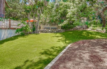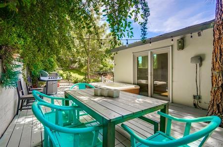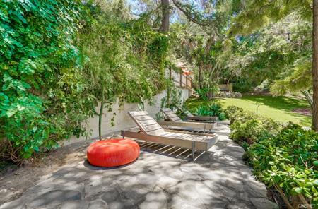 saline jacuzzi. The backyard has pine trees, palms, succulents,