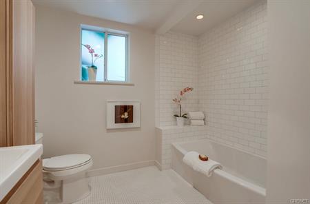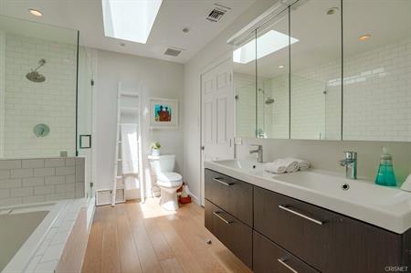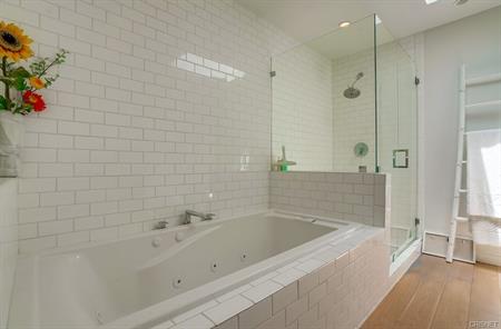 bathroom with skylight, luxurious couple’s jet tub and separate