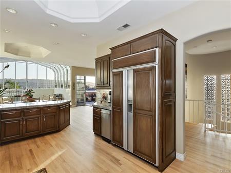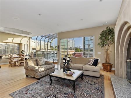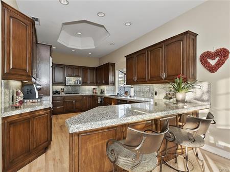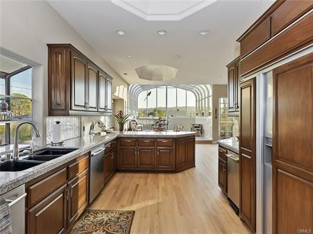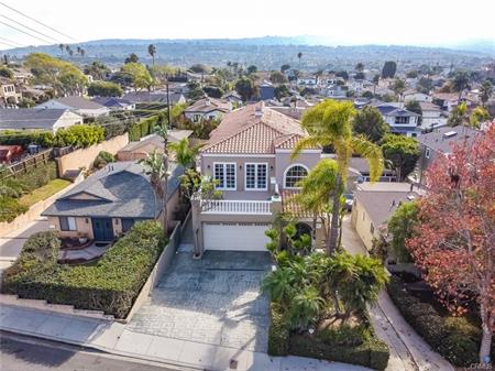 Thoughtful design and attention to detail in this 5-bedroom home that brings together outdoors and indoors. For privacy, a courtyard entrance features a security gate with intercom that opens to an inner court. A grand foyer, with stairs that lead to the entertainment level, bedrooms are conveniently nearby. Spacious kitchen offers counter-top dining, adjacent table dining, and is perfectly located for to serve the solarium, family room, outdoor areas, the formal dining room and game room. The bedroom level has multiple walk-in closets, bathrooms with jetted tubs, and a laundry room with folding area and plentiful storage. The solarium with wet bar has stunning Palos Verdes views year-round and provides natural light throughout. Outdoors is always steps away, with four outdoor living areas, including a spa, natural gas BBQ connection, and a private rooftop retreat. Also a 680 sq.ft. basement suite with separate entry and full bath (currently used as a recording) is ideal for guests, extended family, or in-home business. |