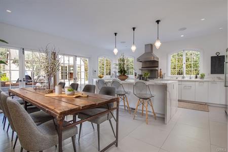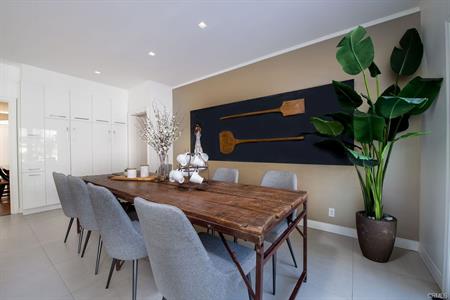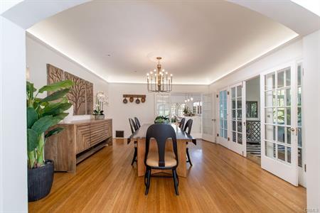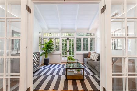 The dining room flows naturally into an airy sunroom. The