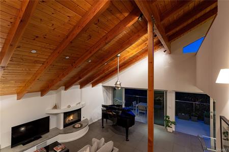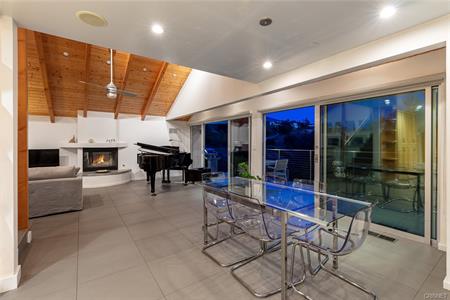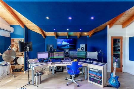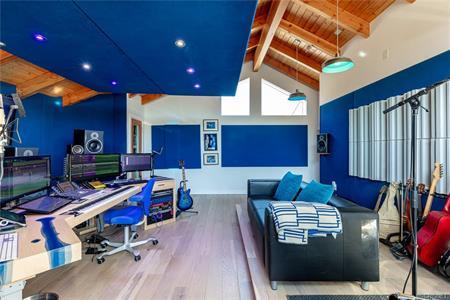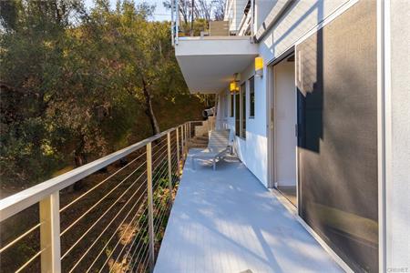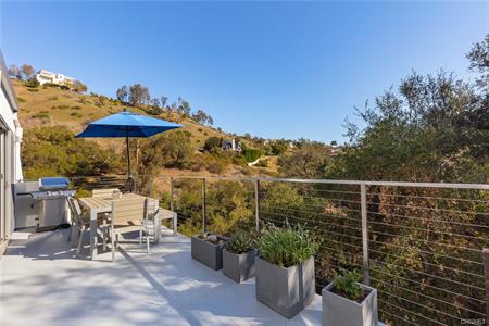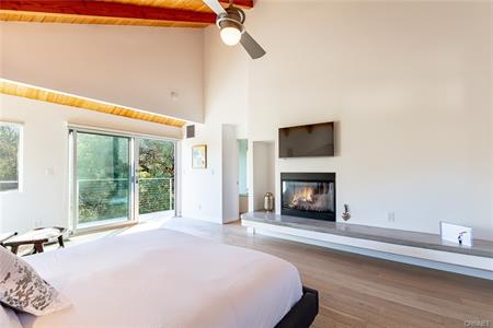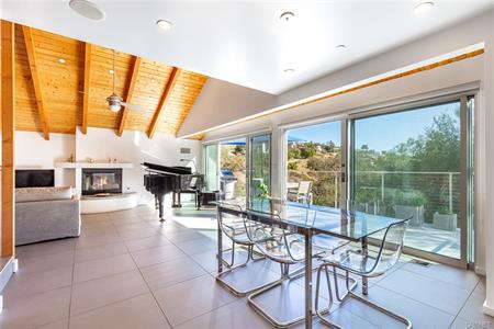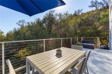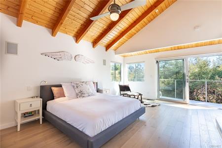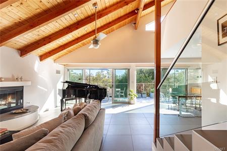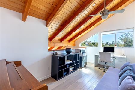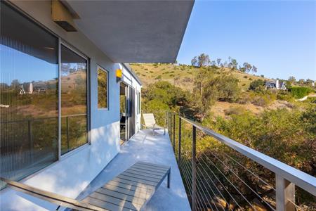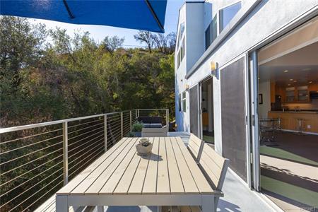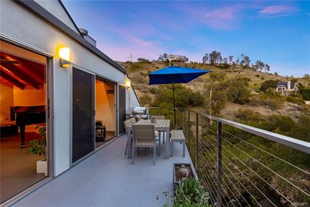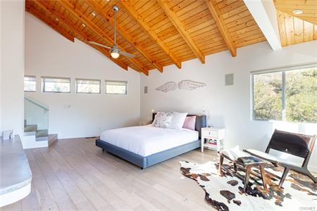One of a kind contemporary home, nestled in mature oak trees on three parcels of land, tucked in the El Nido neighborhood. Multi-level, solar powered 2-bedroom home with exposed high wood beamed ceilings and the potential use of the loft as a third bedroom. Built by Audio Perception, the converted garage is a professional recording studio for the creative musician or producer. Grey natural stone stairs, thoughtful architectural lines and an open floor plan. Fleetwood sliding doors on the main-level balcony, with views of sunsets over the canyon. Oversized main suite featuring high-ceilings, fireplace, updated bathroom with natural wood cabinets, glass shower, spacious jacuzzi tub, walk-in closets and storage room. Secondary bedroom features natural wood flooring and an updated full bathroom. The lower level of home offers expansion possibilities to maximize the home's space. This is an opportunity to be part of a truly magical community surrounded by the canyon, ocean and nature.