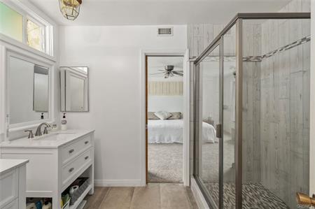 features a downstairs primary bedroom with a remodeled bathroom.
